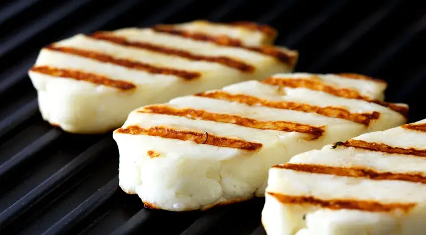 🥗 Салат с жареным Халуми — упругий сыр с золотистой корочкой, листья салата, вяленая клюква, груша и медово-горчичная заправка. Легкий и сытный одновременно.