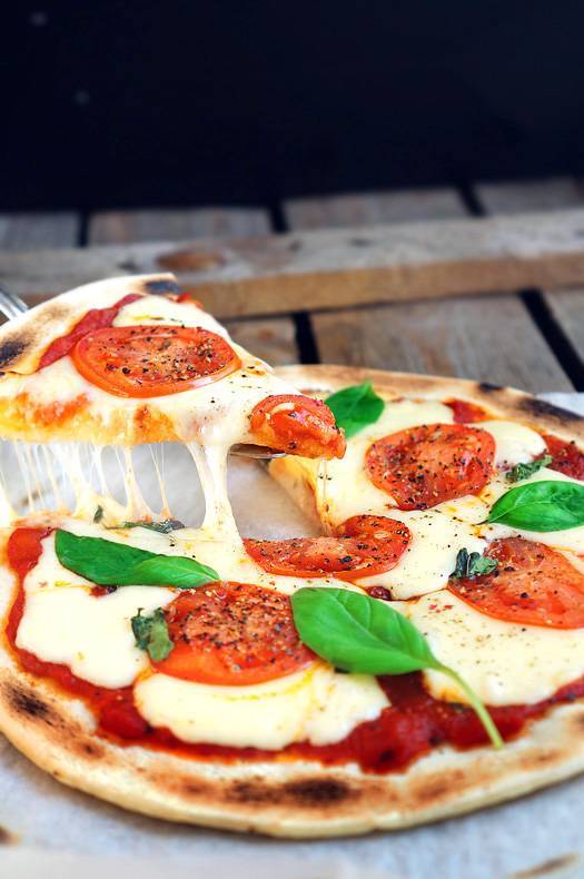 4. Добавить кусочки моцареллы, пока она слегка не расплавится. Посыпать базиликом.
